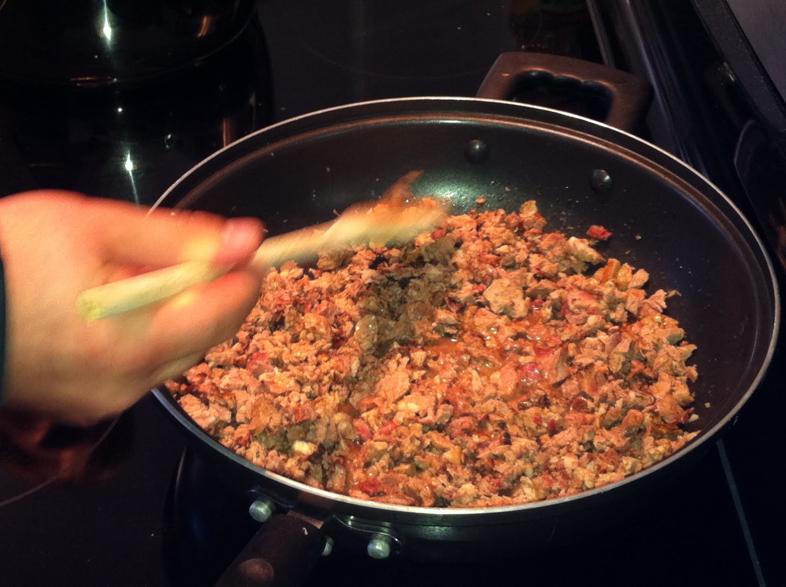 Added the chopped brisket and a beer to the drippings. Let it simmer for close to an hour while adding some water and another beer.