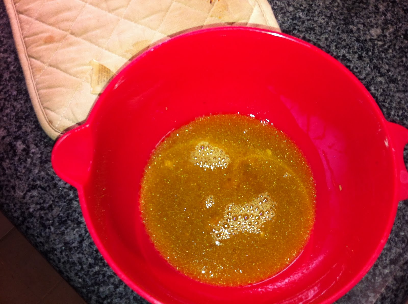 Took the layer of lard off the top of the frozen drippings and put the drippings in a pan and heated it up.